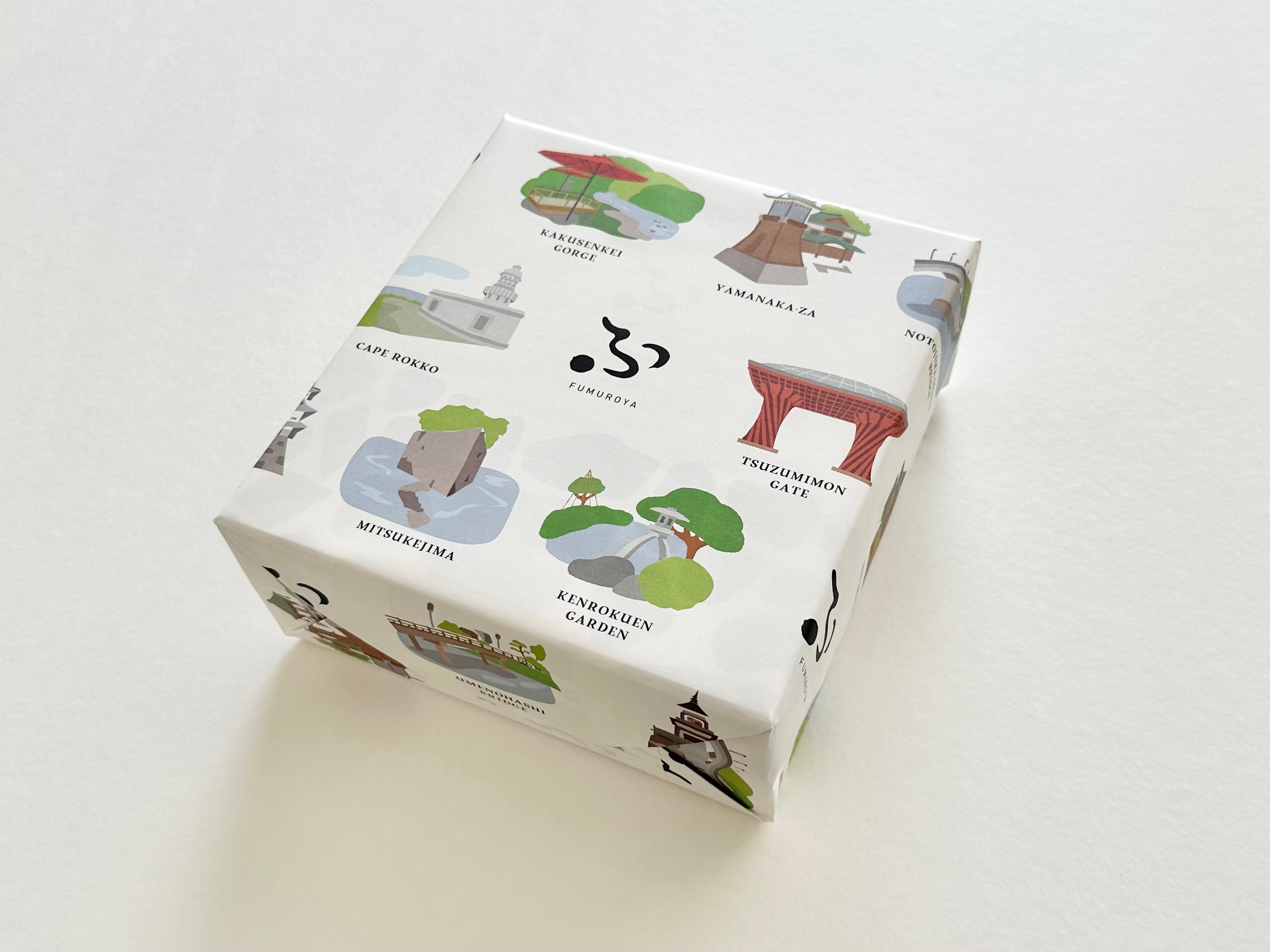 包装紙には能登・金沢・加賀の観光名所を配し、箱には石垣をイメージした模様を配置。いしかわの魅力をあらためて伝え、能登への想いを表現いたました。昆布だしが上品に香るあっさりとした味わいのおすましに、能登の美しい花「のとキリシマツツジ」を映した加賀麩を浮かべることで、石川県の文化が育んだ加賀麩に、郷土への想いを込めたひと品に仕上げました。