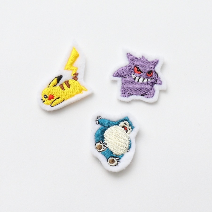 ワッペンは、ピカチュウやゲンガー、カビゴンなど、『ポケットモンスター 赤・緑』に登場する15種類のポケモンから選ぶことができ、左胸・右袖・右前裾・左後裾の最大4カ所までつけることができます。日常でさりげなく身につけられるように、ワッペンも小さめに作りました。サイズは、全5サイズ(XS・S・M・L・XL)から、お選びいただけます。