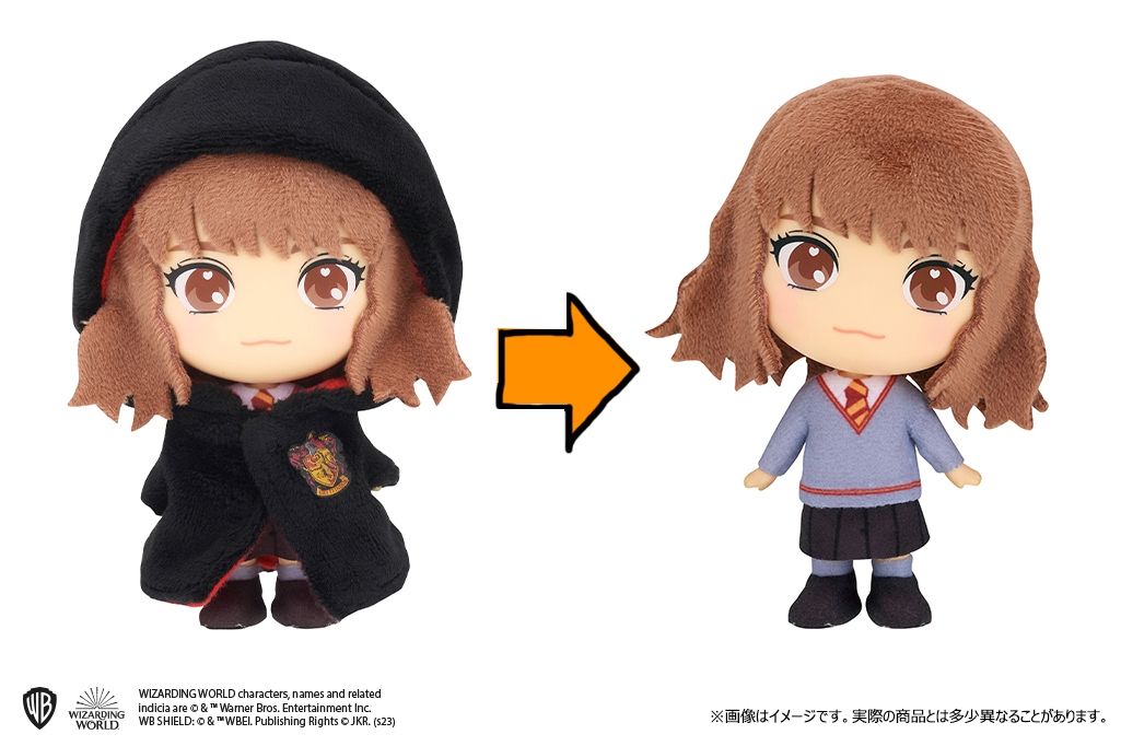 『HOODIEFiGU(フーディフィギュ)』の特徴でもあるフードは、本商品では作品の世界観を表す「ローブ」を採用。ソフトな触り心地で、ローブを着せるとキャラクターたちのフォルムもよりふんわりとした可愛らしい印象になり、ローブを脱がせるとホグワーツ魔法魔術学校の制服姿に。ローブのオン・オフ、1つのドールで2通りの楽しみ方ができます。