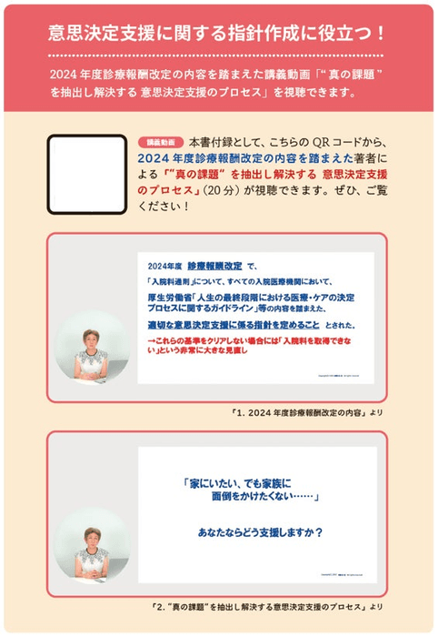 QRコードの読み取りで、意思決定支援に関する指針作成に役立つ講義動画「意思決定支援のプロセス」(20分)を視聴できます。