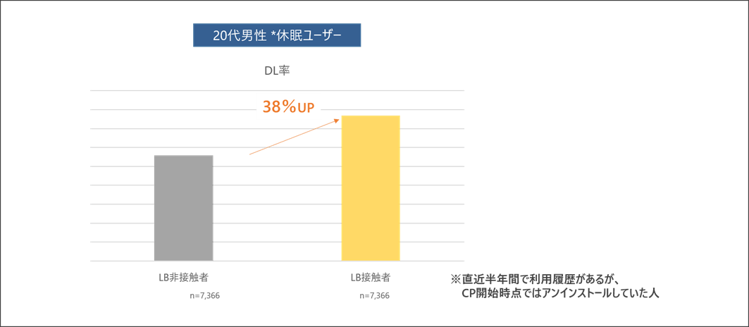 ◆20代男性の休眠ユーザーに限定した、アプリダウンロード率比較