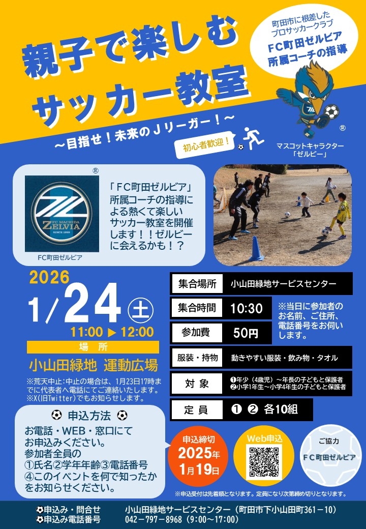【2026/1/24(土)】「FC町田ゼルビア」所属コーチが指導!小山田緑地で「親子で楽しむサッカー教室」を開催