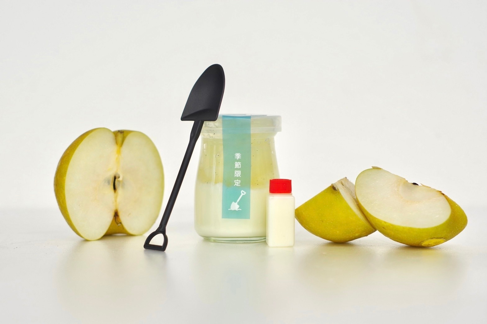 徳島県産のジューシーな梨を、レモンとバニラで香り付けしたジュレの中にたっぷりと閉じ込めました。別添のヨーグルトソースとの相性は抜群!