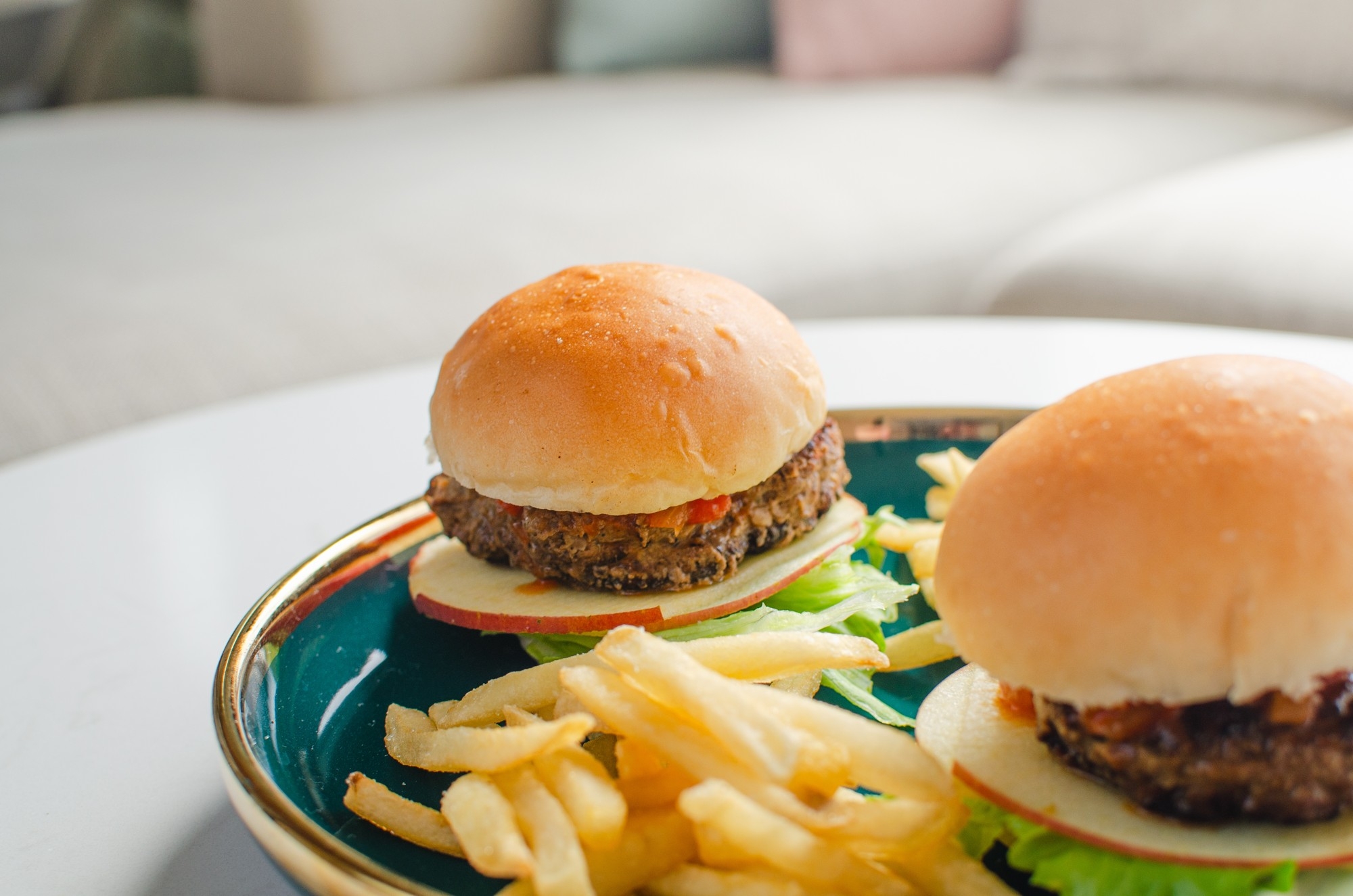 甘いスイーツの合間にお楽しみいただけるよう、下段には本格的なセイボリーをご用意しました。ジューシーな信州牛を挟んだプレーンミニバーガーは、フライドポテト付きで、満足感を一層高めてくれます。