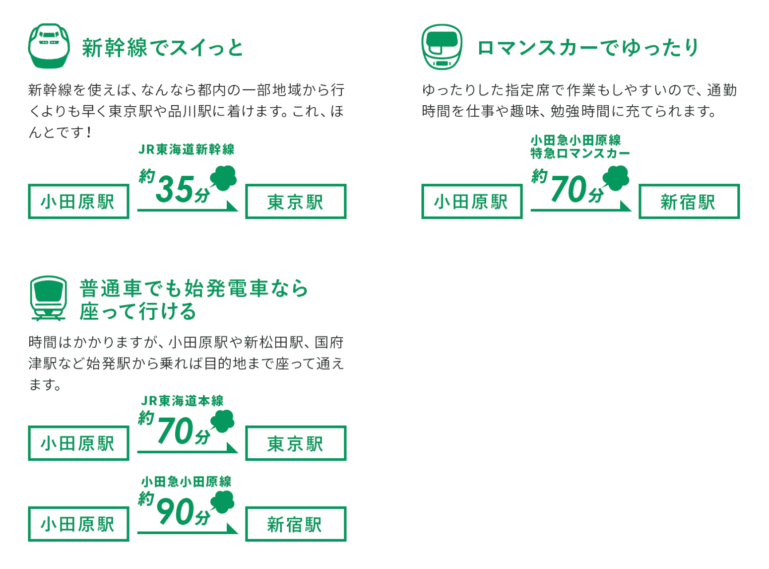 在宅勤務の広まりとともに地方志向が高まったものの、回数は減っても定期的な通勤などが必要な方には、東京までのアクセス性の高さが評価され小田原が選ばれています。