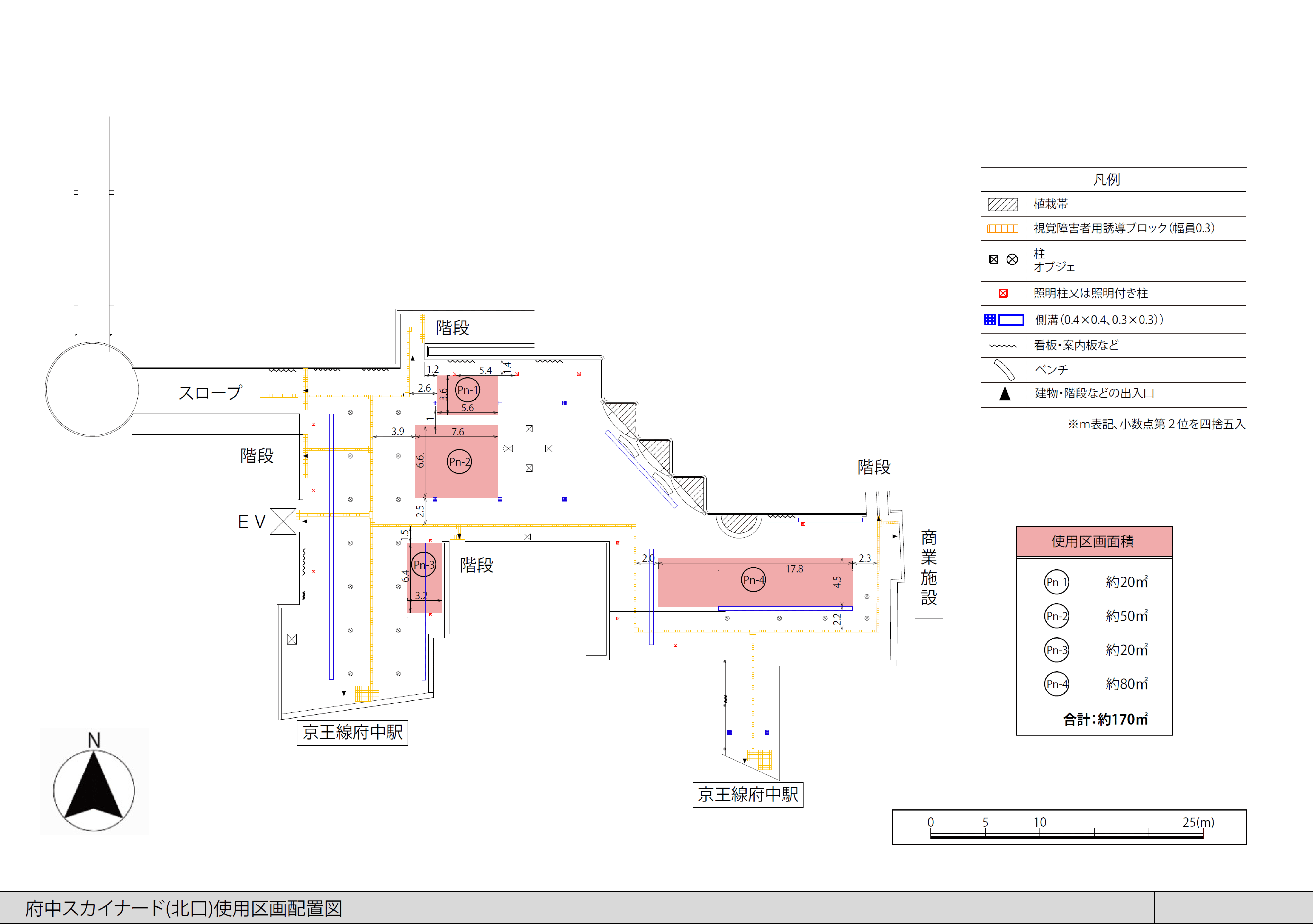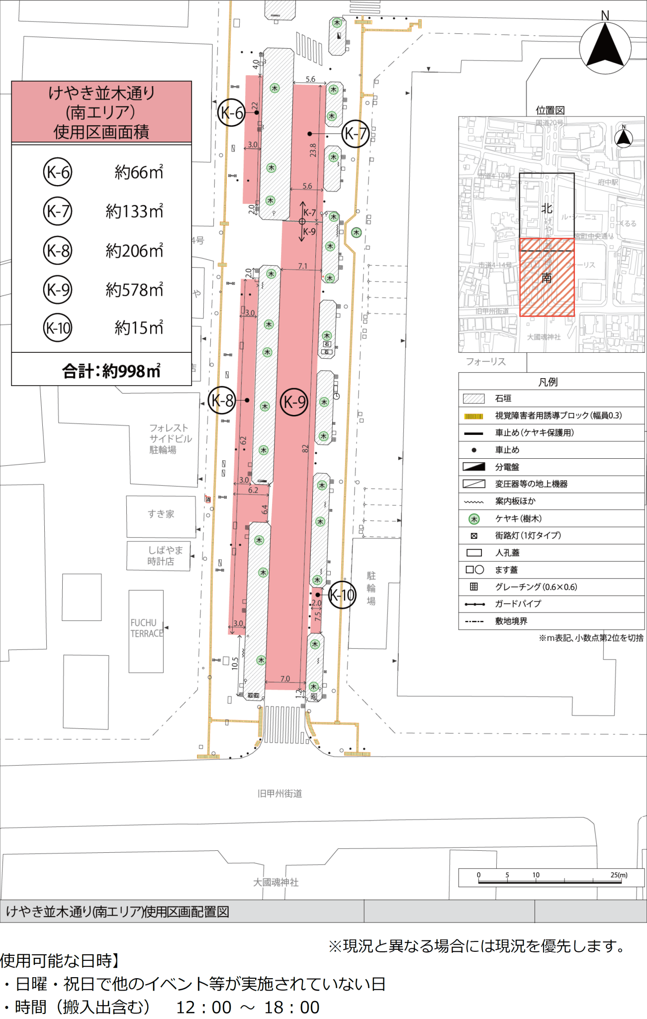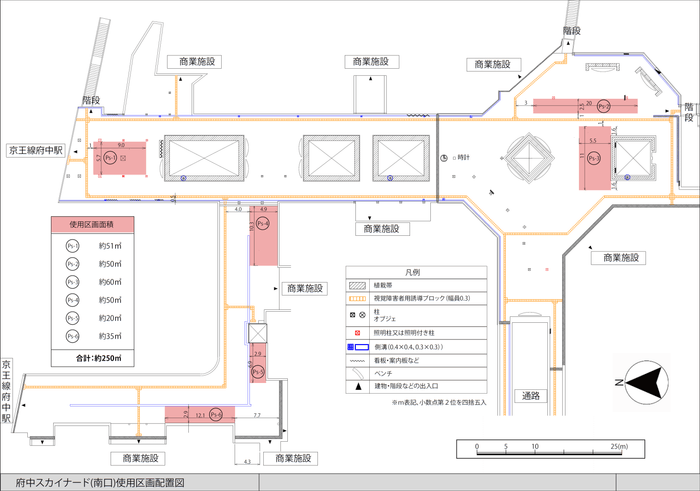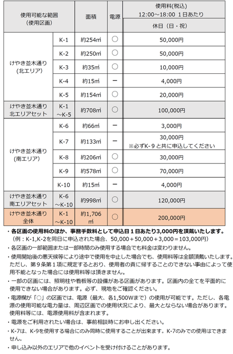 使用希望者は、けやき並木通りと府中スカイナード北口・南口(ペデストリアンデッキ)の指定のエリアを使用することが出来ます。