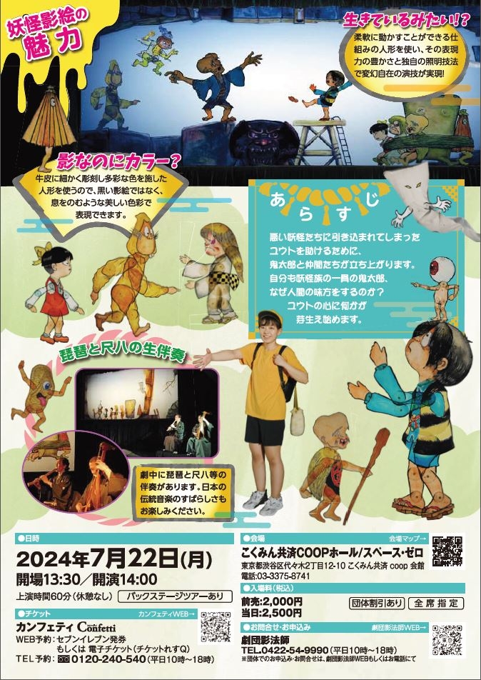 日本児童・青少年演劇劇団協同組合主催、第52回夏休み児童・青少年演劇フェスティバル参加作品「妖怪影絵劇『ゲゲゲの鬼太郎』」 が2024年7月22日 (月)にこくみん共済 coopホール(全労済ホール)/スペース・ゼロ(東京都渋谷区代々木2-12-10)にて上演されます。