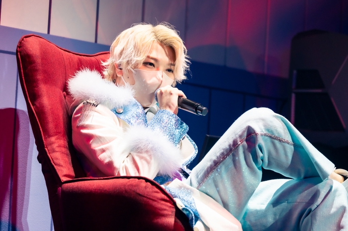 即座にアンコールの声がかかり、準備が終了すると、生配信での「色々やりたい、やっぱ歌かな」というポッキーの発言がフィーチャーされる。ファンのざわめきの中、白と水色の王子様のような衣装に身を包んだポッキーが登場。この日一番の歓声の中、「エンヴィーベイビー」を披露した。「イベントの度に歌いたいと思っていて」と明かしつつ、反応が不安だったというポッキーは、ファンの笑顔にホッとした表情を浮かべる。