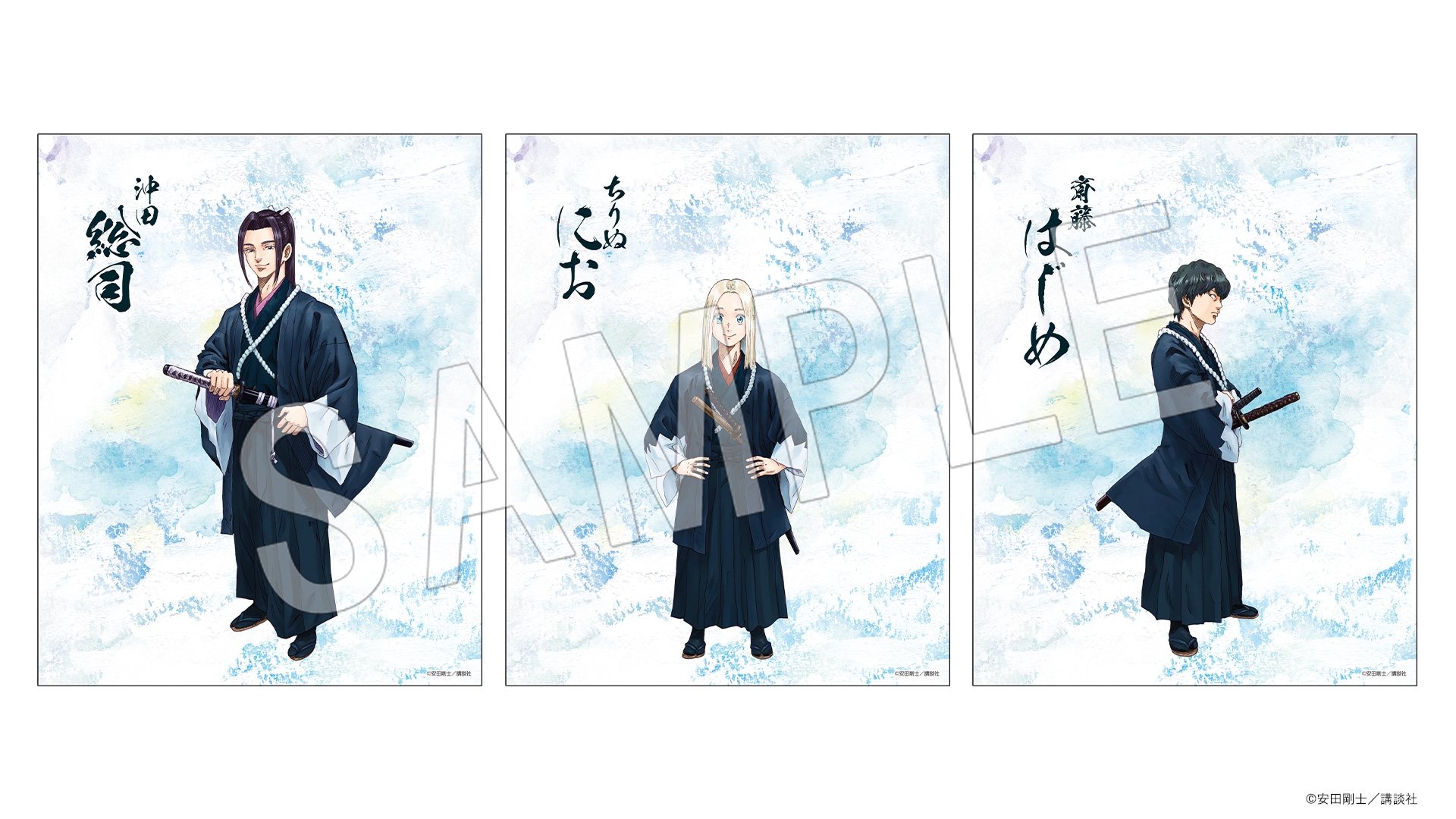 また映画村では原画の展示のほか、作品をイメージしたコラボメニューを提供します。インパクト抜群の青いスープのラーメンや近藤勇の好物「たまごふわふわ」などを召し上がっていただけます。また描き下ろしイラストを使用したオリジナルグッズも販売いたします。スタンプラリーを中心にコラボメニューや限定のコラボグッズなど、京都ならではのイベントとなっております。