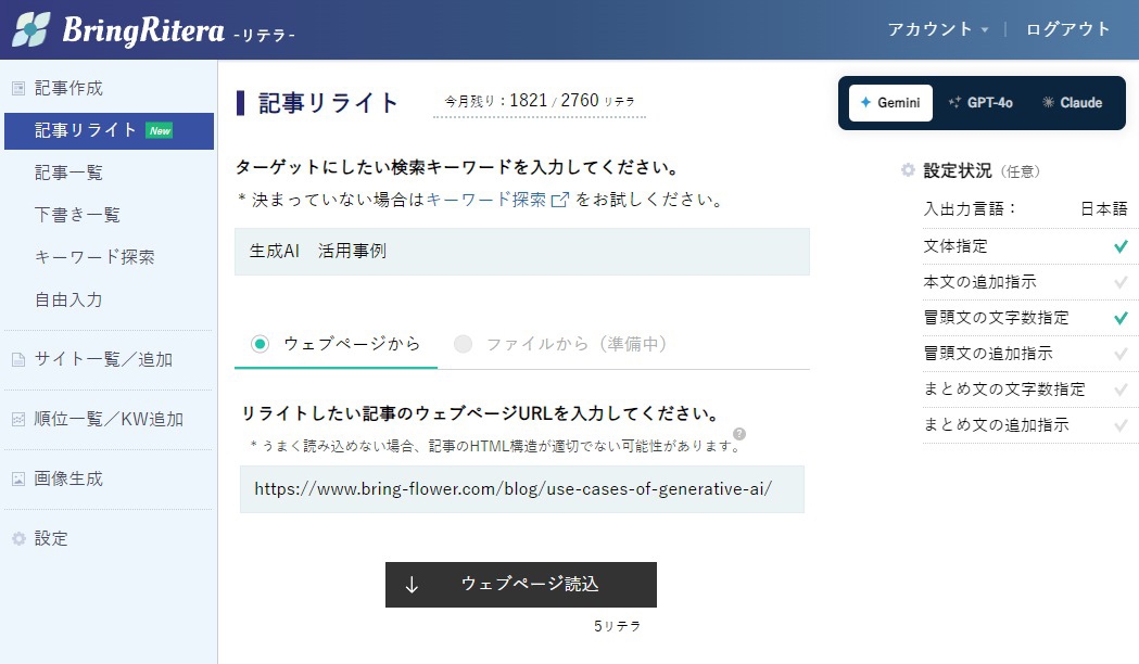 URLをもとに参考情報インプット、リライトまで可能なSEOに強いAIライティングツール「BringRitera(リテラ)」