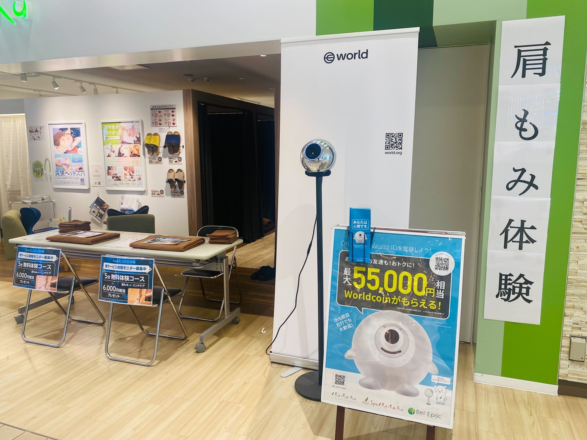 Re.Ra.Ku店舗に設置されているWorld ID認証デバイス「Orb(オーブ)」で人間認証を行うと、年間最大6,500円相当のWorldcoin(WLD)を受け取ることができます。