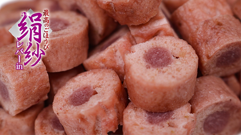 ドギーマンの『絹紗』シリーズは、噛む力が弱くなった「シニア犬」も、「お口の小さい超小型犬」もずっと「お肉の旨味」を楽しんでほしいという気持ちから開発した犬用おやつシリーズになります。好評発売中の絹紗ささみ・ビーフシリーズに続いて、お客様がより「うちのコの好み」に合わせて選べるように新形状・フレーバーを充実させるため『絹紗レバーin』を発売いたしました。