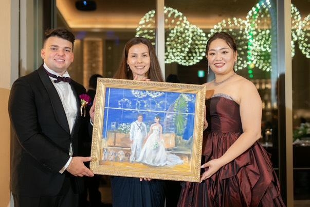 珍しい演出なのでゲストにも楽しんでもらうことができましたし、自分の姿を描いてもらうという貴重な経験ができて、一生に残る想い出になりました。描いていただいた絵はずっと大切にしたいと思います。