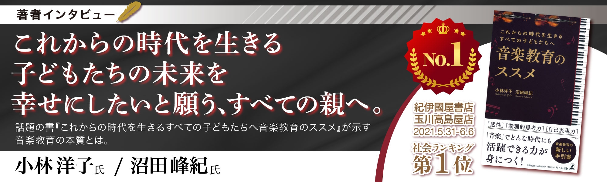 株式会社幻冬舎ウェブマが運営する「話題の本.com」(https://wadainohon.com)では、21年6月に著書『これからの時代を生きるすべての子どもたちへ 音楽教育のススメ』を刊行した小林音楽教室主宰・小林洋子氏へのインタビュー記事を公開しました。