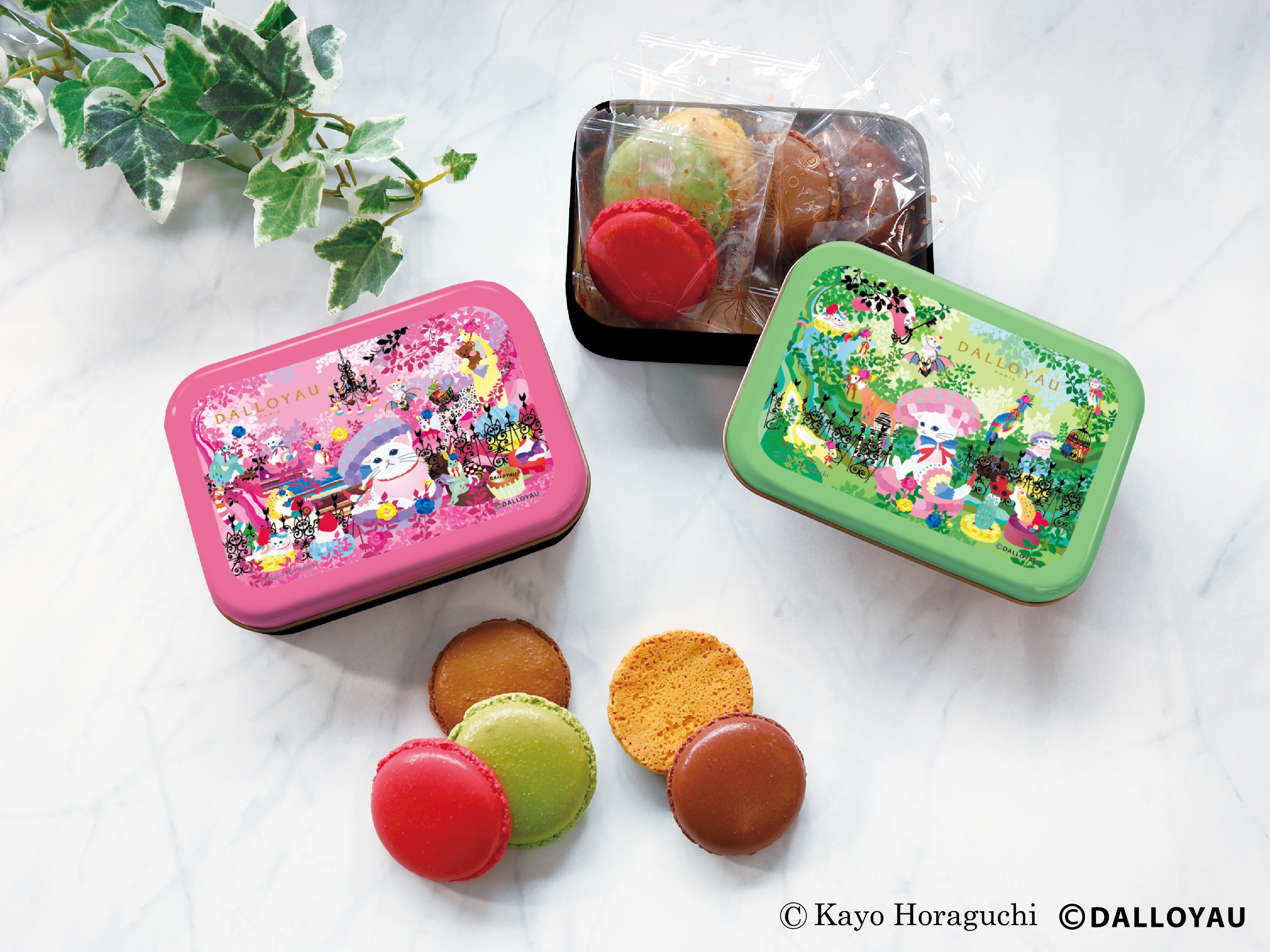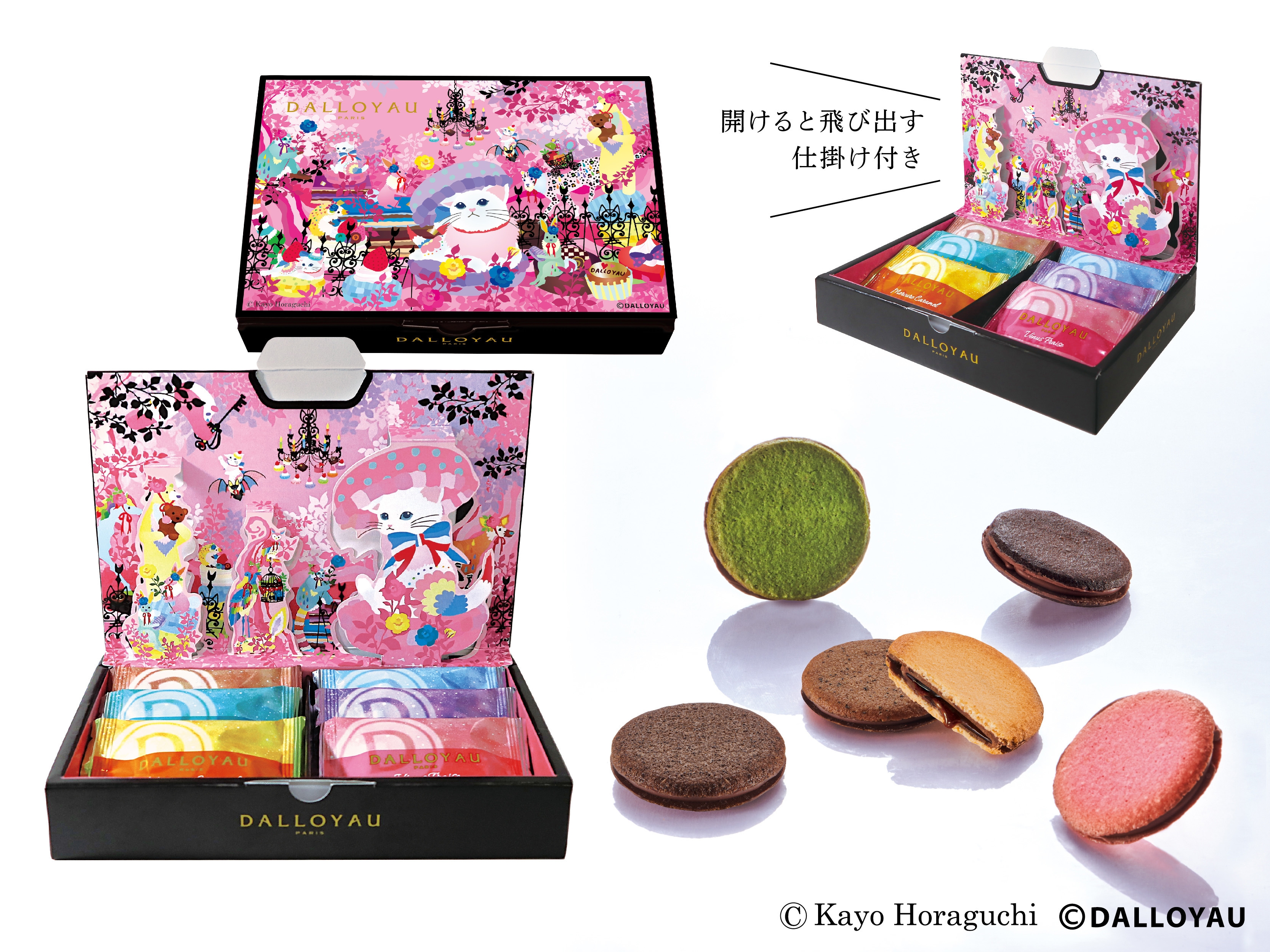 マカロンやガトー「オペラ」などの洋菓子の販売を中心とした、フランス・パリに本店を持つ老舗ブランドダロワイヨより、鮮やかな色と個性溢れるデザインで人気のイラストレーター「ホラグチカヨ」さんによる、特別描き下ろしイラストを使用した商品を発売します。間違い探しができる商品やスマートフォンの壁紙画像がもらえるお楽しみカードが入った商品など、おいしさと楽しさを掛け合わせた仕掛け付きハロウィン商品です。