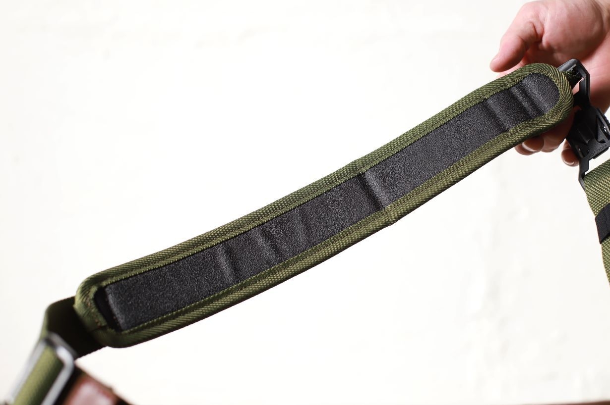 ショルダーパットに滑り止め生地を使用することでカバンがズレ落ちにくくなっています。