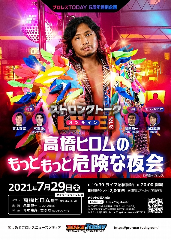 【開催決定】新日本プロレスの高橋ヒロム選手が出演!7月29日(木)ストロングトークLIVEオンライン Vol.13「高橋ヒロムのもっともっと危険な夜会」