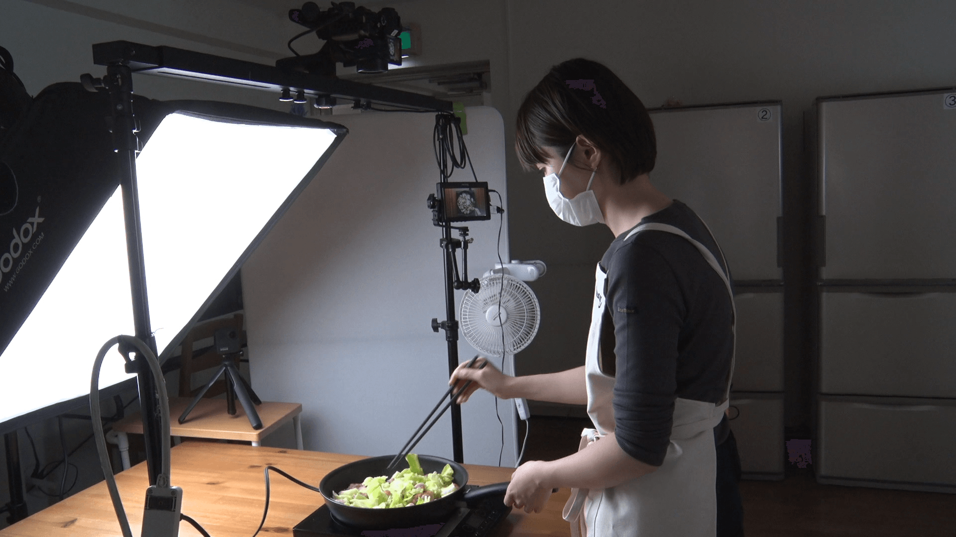 毎月約400本のレシピ動画を制作する『クラシル』。カメラと照明をセッティングしたテーブル15台が用意されたキッチンスタジオで、管理栄養士や調理師など料理に精通した総勢30名の“クラシルシェフ”がそれぞれのブースで調理をし、撮影までこなしています。統括するのはフードラボチームのリーダー田部晴菜さん26歳。クラシルシェフが調理・撮影したものをチェックするほか、自身もレシピを開発して撮影を行っています。