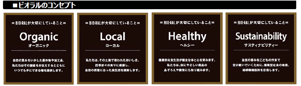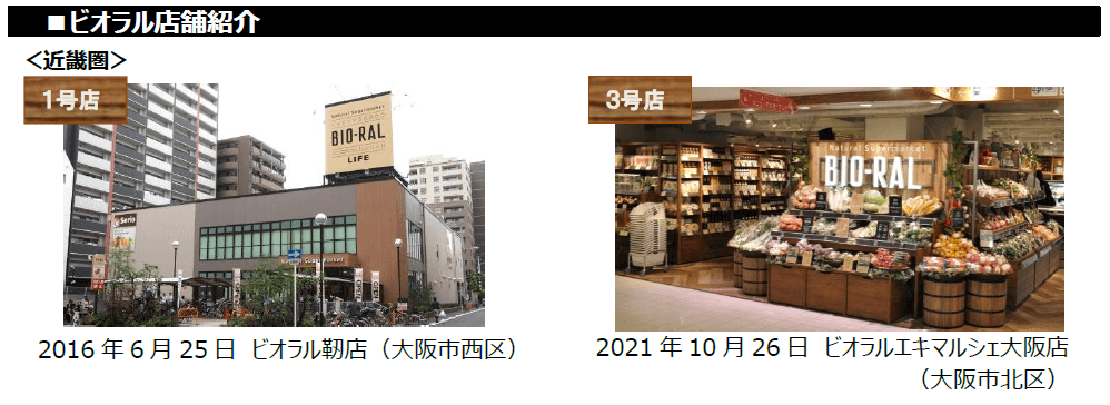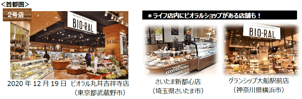 “素敵なナチュラルライフスタイルを通じて、心も体も健康で美しく豊かな毎日を過ごしてもらいたい”と願うスーパーマーケットとして、2016年に「ビオラル靭店(大阪市西区)」が誕生いたしました。2020年12月には首都圏の第1号店「ビオラル丸井吉祥寺店(東京都武蔵野市)」、2021年10月には「ビオラルエキマルシェ大阪店(大阪市北区)」がオープンし、2022年2月オープンの「ビオラル下北沢駅前店」で、店舗数は首都圏・近畿圏にそれぞれ2店舗の計4店舗となります。「ビオラル」は店舗展開だけでなく、オーガニック・ローカル・ヘルシー・サスティナビリティーをコンセプトとした「BIO-RAL(ビオラル)」ブランドのオリジナル商品の販売を、ライフ各店舗で拡大しております。