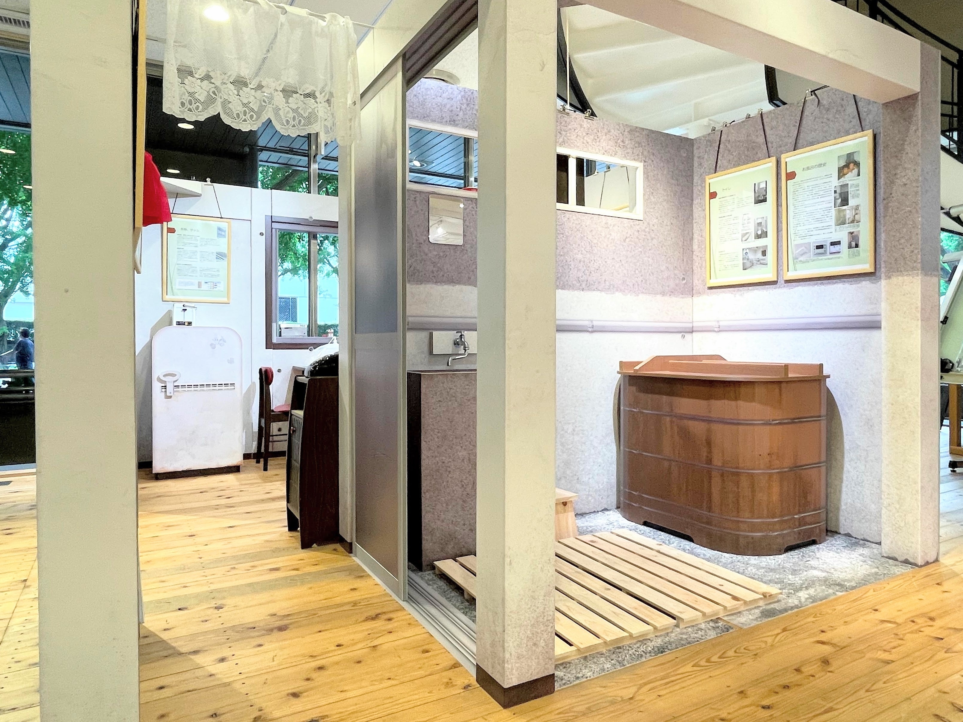 今回の展示は動画でも紹介しています。キッチンやお風呂、間取りの歴史と変遷を動画と写真で綴っています。
