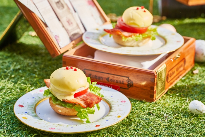 春のアフタヌーンティーは、白うさぎならぬ“イースターバニー”からの招待を受けたアリスが訪れた「不思議の国の花祭り」がテーマ。はじめにアシェットデセール「The Flower Clock~不思議の国への招待状~」を受け取って、色鮮やかな春の花々が咲き誇る不思議の国へと旅立ちます。うさぎに見立てたグリオットケーキ、春のガーデンをイメージしたシュークリーム、ステンドグラスのように色鮮やかなアイシングクッキーなどのスイーツや軽食、スコーンを、マリアージュフレール社の香り高い紅茶とともにご堪能ください。