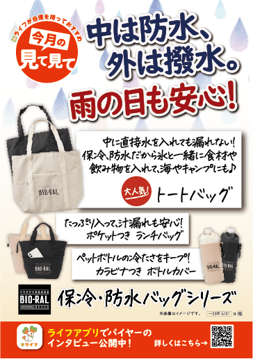 【ライフ】どんどん暑くなるこれからの季節に大活躍!『保冷・防水』の高機能BIO-RALバッグシリーズ販売中