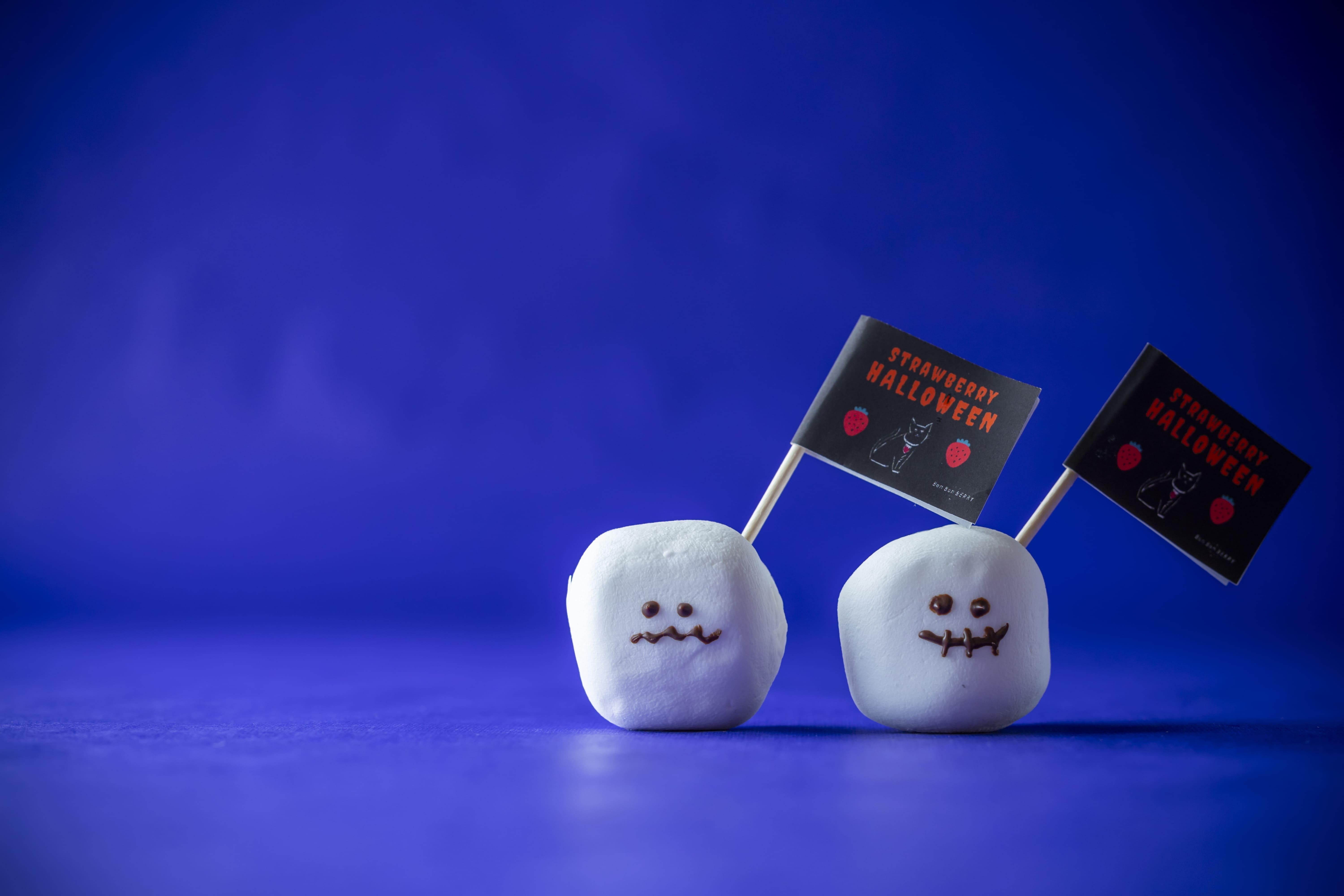 限定メニューにつく「おばけマシュマロ」にはオリジナルの“ストロベリーハロウィン”フラッグが刺さっています。フラッグの中には「いちごのミニバームクーヘン」と交換できる「当たり」つきも隠れています。おばけマシュマロの顔はひとつひとつ手描きのため、そんな表情の違いもハロウィン気分と一緒にお楽しみください。