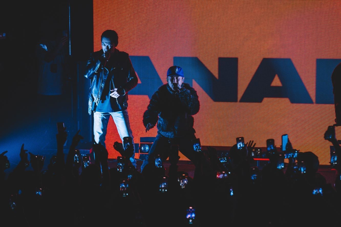 主役の死後にリリースされたリミックス作品などを、TOKONA-Xが愛したクルー=BALLERSの面々を筆頭に、各地から駆けつけた多くの客演アーティストが力強くパフォーム。パートのラストを締め括ったスペシャル編成の“WHO ARE U?”では、会場全体がおなじみの“X”サインを頭上に掲げ、改めて我々が失った稀代のラッパーを弔った。
