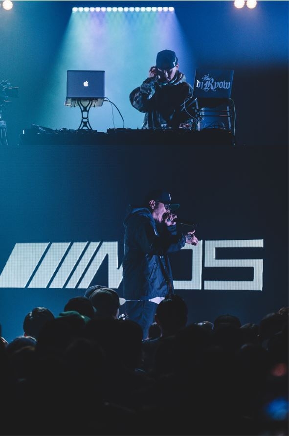 オープニング映像と、続く相棒・DJ HAZU(現・刃頭)のILLMARIACHIセットで幕開けたライブ本編は、盟友"E"qualが登場しての“For Da Bad Boys & Ladies”、大阪・DESPERADO(茂千代 & KENTWILD)がステージに上がっての“YOUNGGUNZ”と、冒頭から圧倒的なまでのクラシック攻勢。