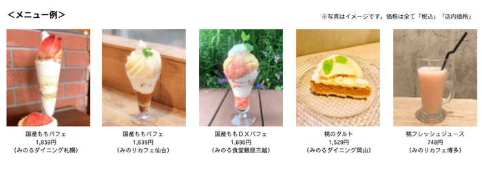 フェアでは、芳醇な味わいで甘い「あかつき」や鮮やかな赤色の果肉とあふれる果汁が特徴の「浅間白桃」など、各産地の旬の美味しいももをリレー形式で提供し、各店舗で趣向を凝らしたオリジナルスイーツとして提供します。