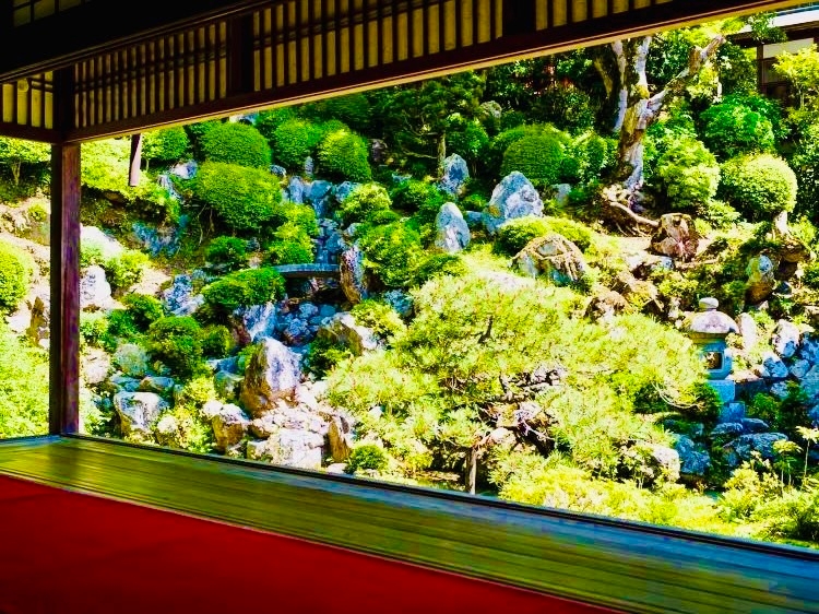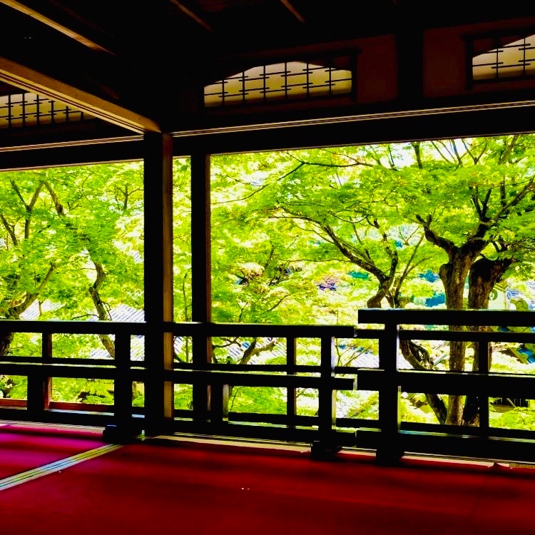 京都市内よりも高台にあるため少し遅い春の息吹を身近に感じ、竹などの新緑の青々しさを境内や上書院からご堪能いただけます。また、当山は境内がとても広く混みあっていませんので、ゆっくりとお参りや散策をしていただけます。