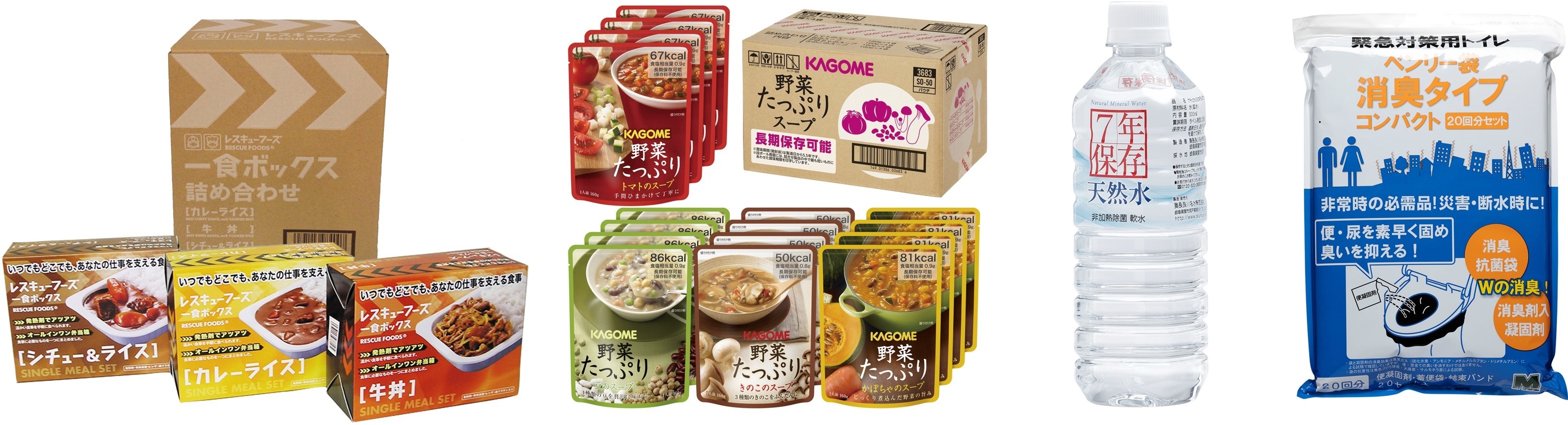 ※非常用食料、水、緊急対策用トイレなどのセットです。