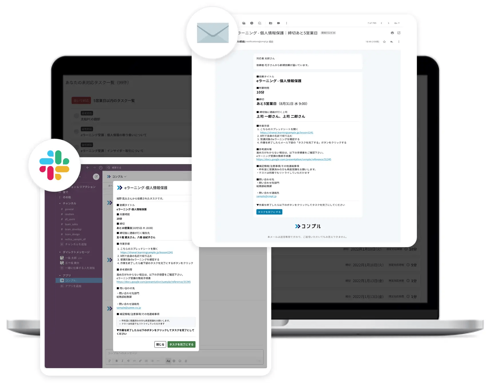 『コンプル』は、社内でのタスク依頼やその督促に関わる業務を自動化するSaaSです。
