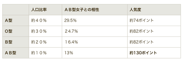 調査対象:AB型かつ20〜45歳の女性
