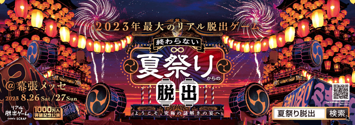 謎解きを通して参加者がまるで“物語の登場人物”になったかのような体験ができる「リアル脱出ゲーム」。2007年に初開催して以降、近年では年に40〜50のイベントを開催しており、累計の参加者数が1000万人を突破! それを記念して開催される2023年最大のリアル脱出ゲーム『終わらない夏祭りからの脱出』は、いよいよ今月末の開催となります。