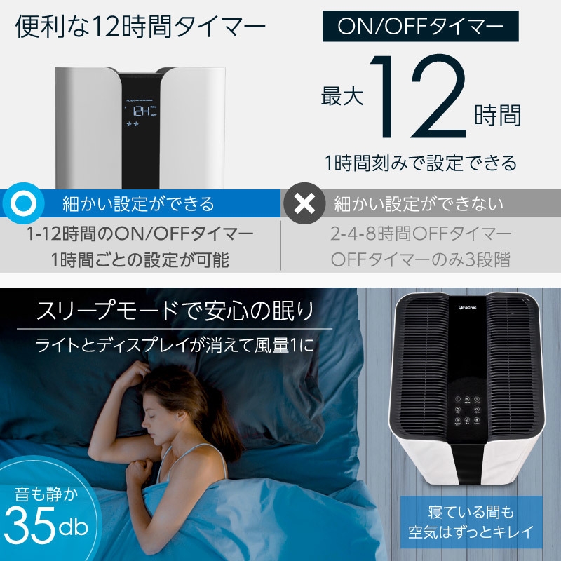 ・タイマー、スリープモード、チャイルドロック機能搭載。