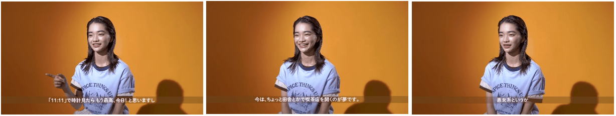 「私は私にまだまだ出会いたい。好きなことはたくさんあっていいと思う」というセリフを、見上さんが喜・怒・哀、3つの感情で表現。目線、声色、アクセントのつけ方などに変化をつけ、全く異なる印象で見事に演じ分けました。