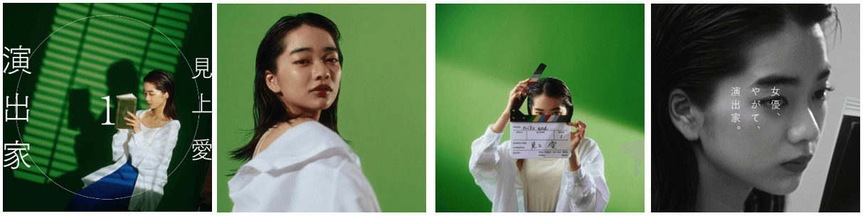WEB動画「多面体」篇では、女優・見上愛としての顔や、大好きなものに触れる素の笑顔など、見上さんの様々な表情を見ることができます。スタイリング別動画では、「演出家」「舞台照明」「カメラ」「音楽」という4つの自身の趣味を、全く異なる雰囲気で表現。これらに実際に興味を持ち、触れてきた見上さんだからこそ語れる、ナレーションにも注目です。見上さんが着こなすコーディネートを写した、LOOK動画も併せて公開いたします。