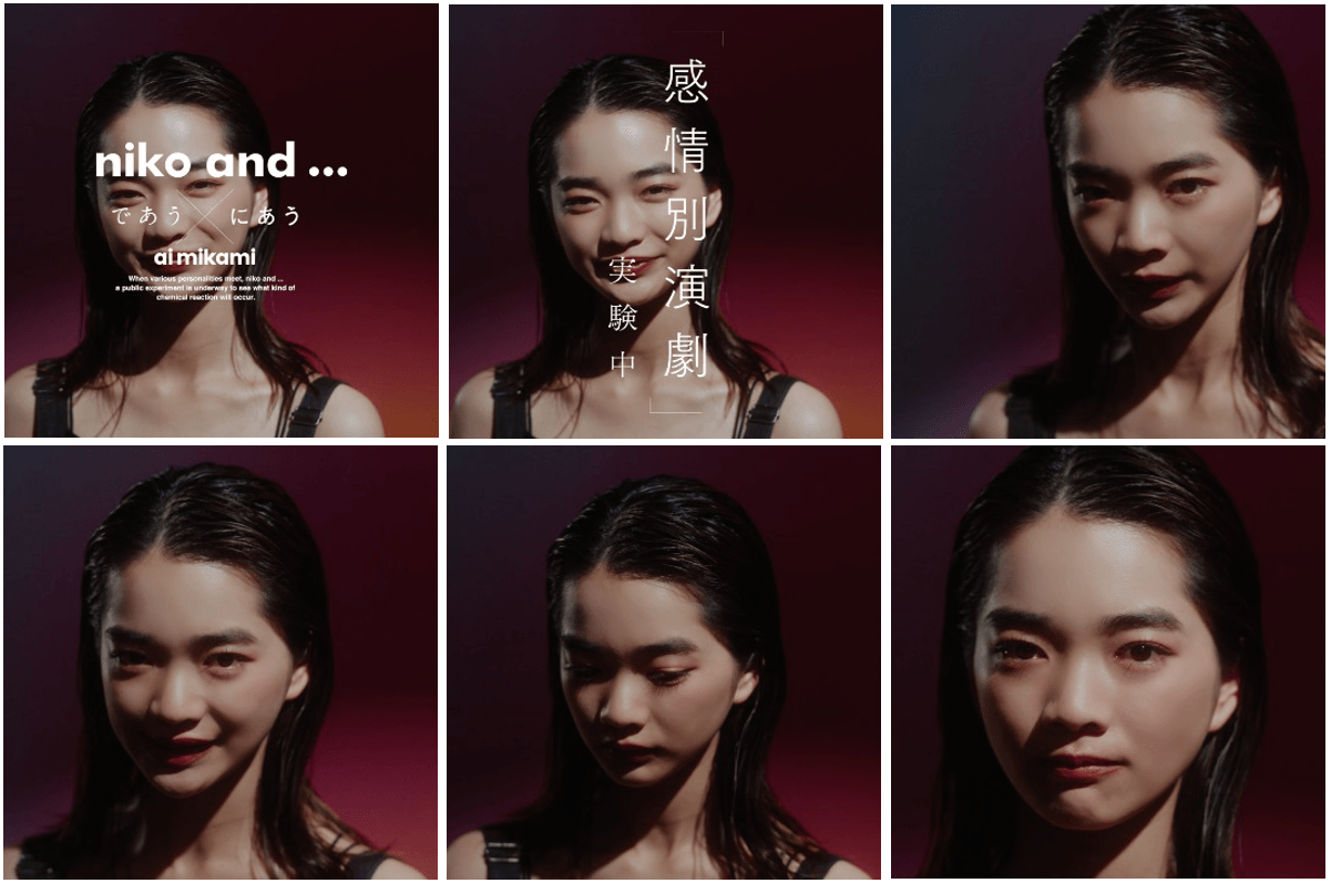WEB動画「多面体」篇の前半に登場する、見上さんの演技パートを収めたniko and ... × 見上愛 15周年記念コンテンツ 「感情別演劇 実験中」篇も併せて公開いたします。