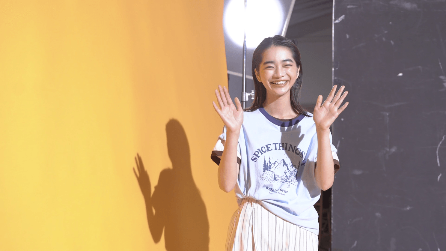 今回は、多面性がテーマになっているということで、私もすごく色んなことに興味を持って、日々色んなことをしながら生きていて、そんな私のパーソナルな部分も取り入れて今回作ってくださったので、すごい撮影が楽しくて、自分でも新しい自分に出会うことができました。なので皆さんもこれをきっかけに新しい自分に出会っていただけたら嬉しいなと思います!では、ありがとうございま~す(照れながら笑顔で手を振る見上さん)。