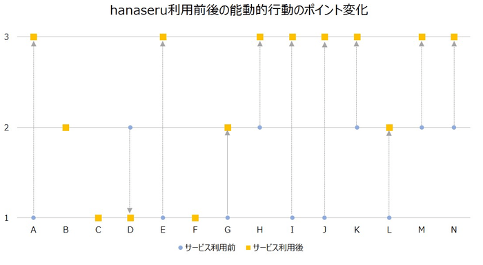 ※1:hanaseru利用前後の能動的行動のポイント変化