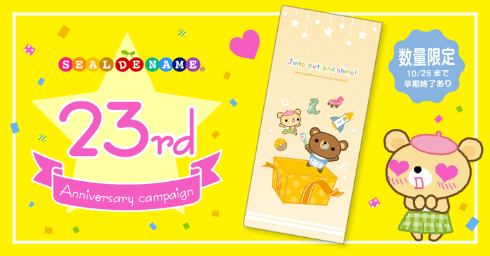 入園・入学準備グッズのECサイト「シールDEネーム」を運営する株式会社サンアドシステム(本社:大阪府大阪市、代表取締役:山根 昭二)は、ECサイトを開始して“23周年”となるためキャンペーンを開催中。第2弾を2025年10月10日(金)10時より開始。今回は、お名前シール・お名前スタンプのセールに加え、1,500円以上ご購入でお名前シール・ワッペンを保管できる「23周年オリジナル・収納ホルダー」をプレゼントいたします。