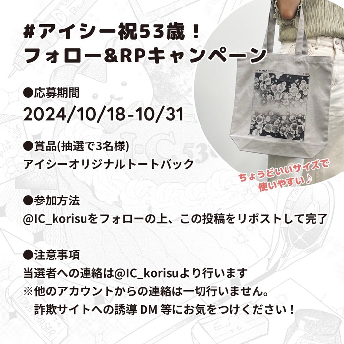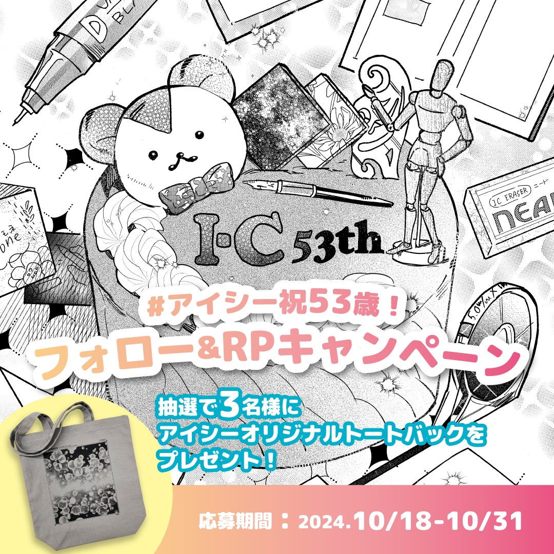 漫画画材のアイシー祝53歳!オリジナルトートバッグが当たる Xフォロー&RPキャンペーンを10月31日まで実施
