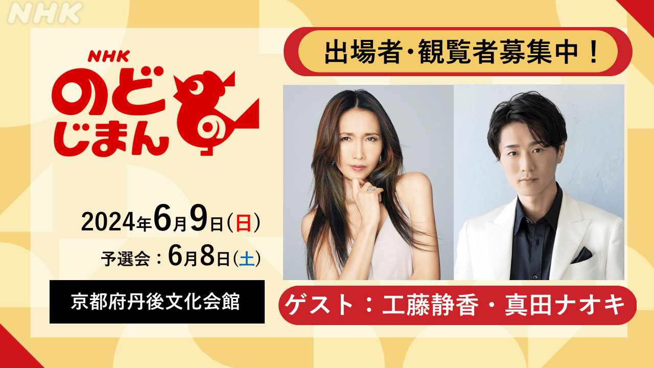 6月9日(日)に京都府京丹後市より生放送でお送りする「NHKのど自慢」に真田ナオキがゲストで出演!