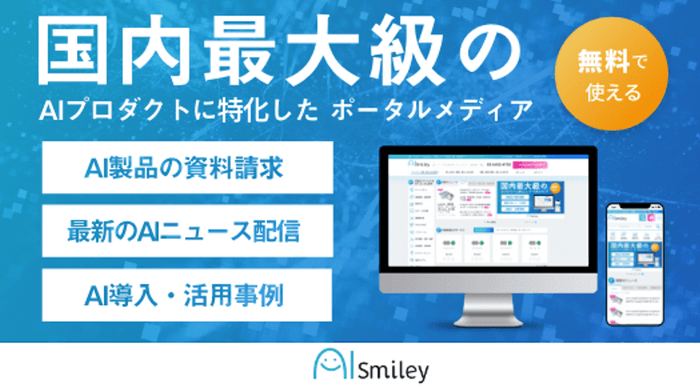 AIsmileyは人工知能を搭載したサービスの資料が請求できるAIポータルメディアです。