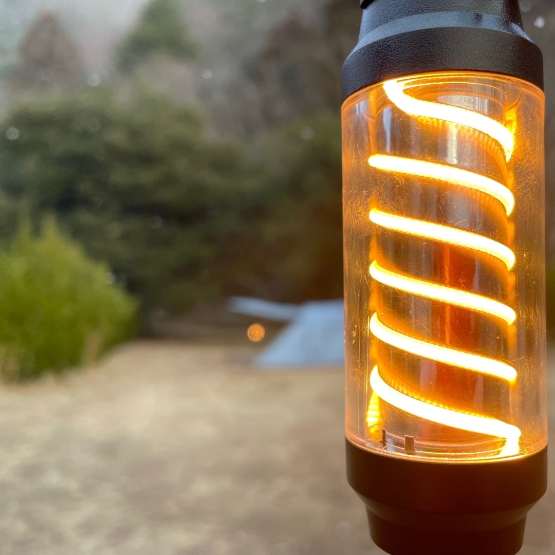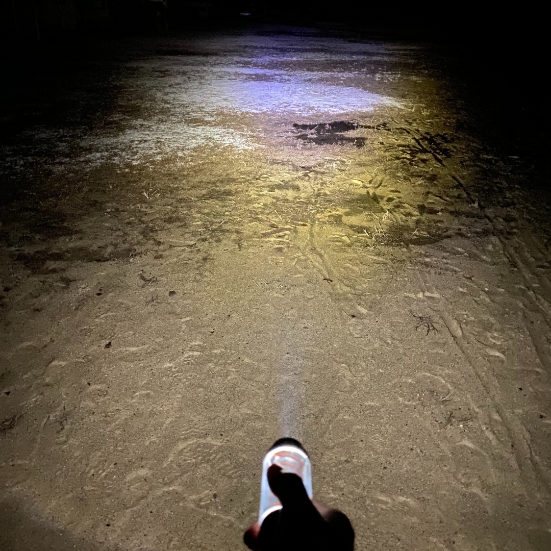 1,900Kのランタンモードから一転、フラッシュライトモードは6,000Kの明かりで集光点灯。夜道を照らしたり、夜に川や海の生き物を探したり、暗闇を照射する心強い機能でありながらその本体はわずか直径9cm程度のコンパクトさ!