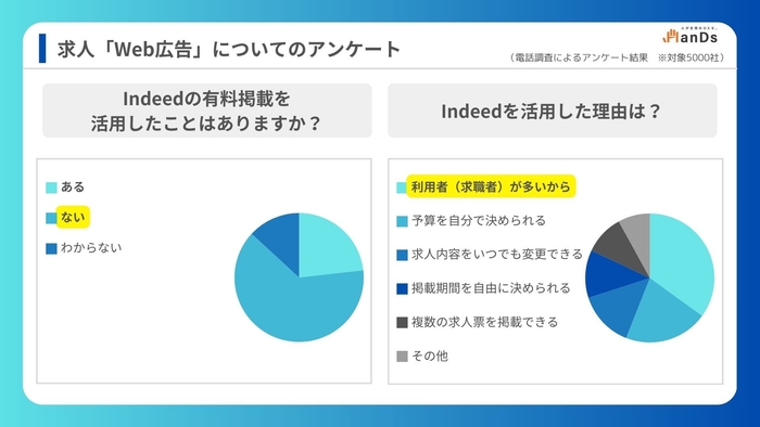調査の結果、採用活動中の企業の23% が「 Indeed の有料掲載を利用したことがある」と回答。
