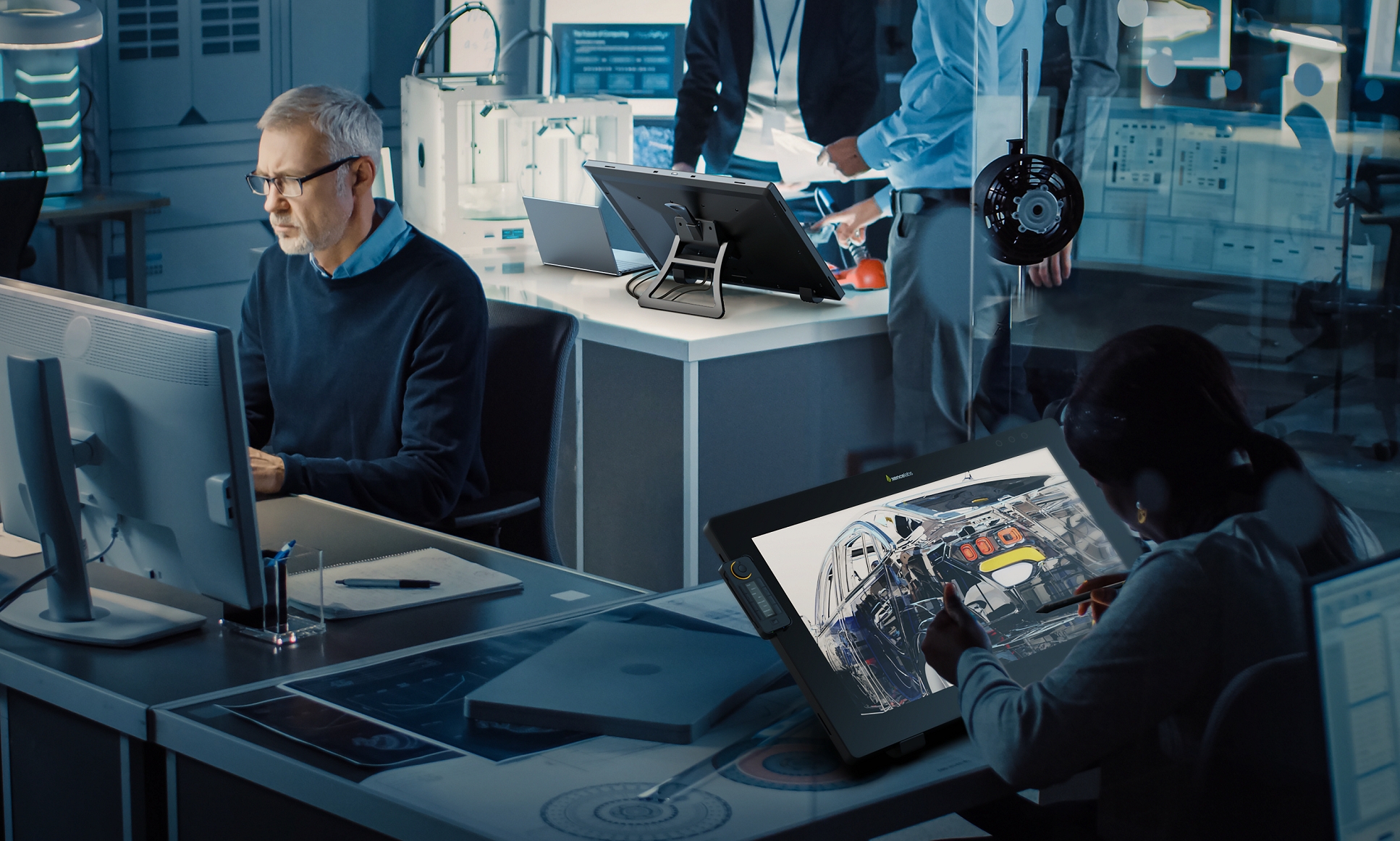 ペンディスプレイは、10億7,000万色の色彩を実現し、正確な色再現を可能にします。4K超高解像度(最大3,840×2,160)は、数倍に拡大した画像でも鮮明さを保ち、細部のスケッチに役立つため、ワークフローの向上に貢献します。また、業界標準の6つの色空間をサポートしています。