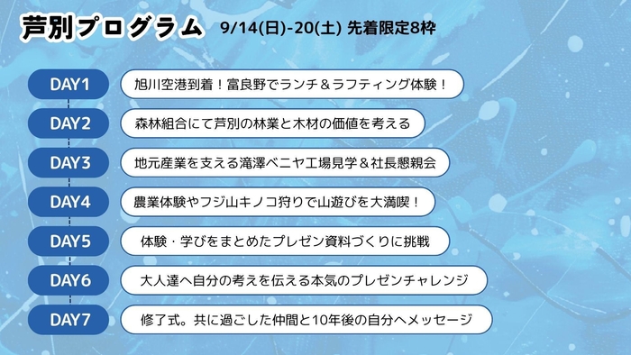 芦別プログラム:9/14(日)-20(土) 先着限定8枠