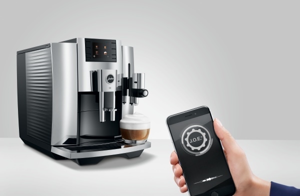 JURAオリジナルアプリ「J.O.E.(R)」を使って、スマートフォンやタブレットでメニューのカスタマイズと保存が可能。オフィスやご家庭で、自分だけのマイレシピのコーヒーをワンタップで楽しむことができます。